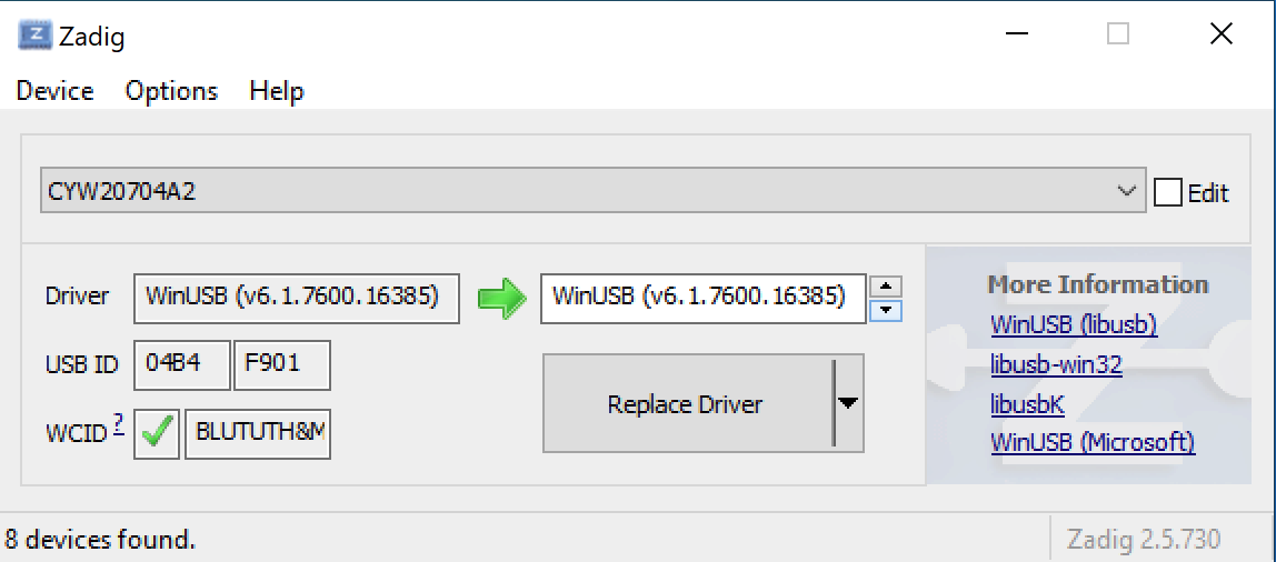 Access to Bluetooth USB Dongle with Zadig